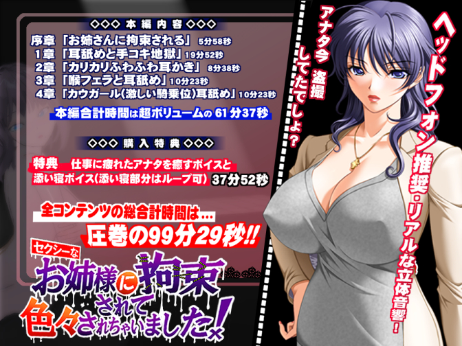 【61分+38分】セクシーなお姉様に拘束されて色々されちゃいました【AMSR】