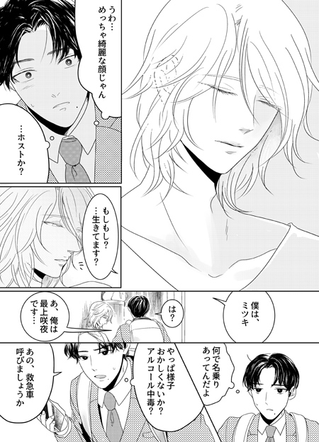 家に着くとミツキと名乗る美青年は、自身がアンドロイドであり、燃料が精子で、それがもう尽きる寸前だと話し出す。