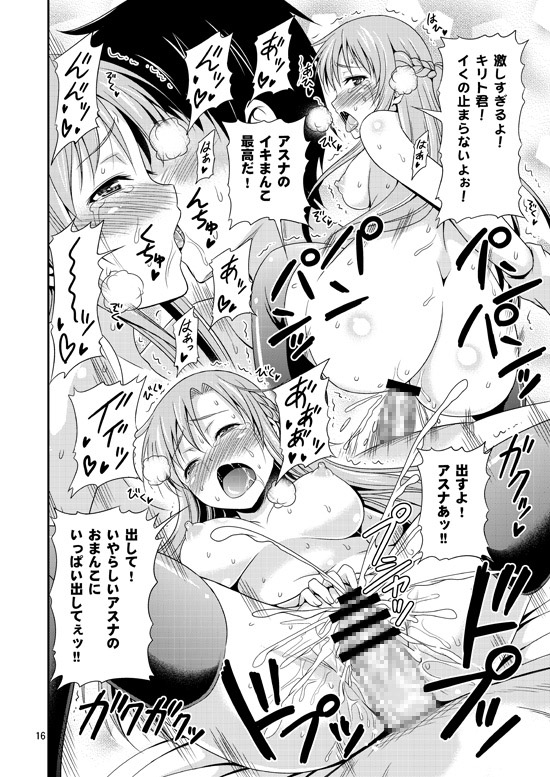 キリトとアスナの激しいセックスを覗き見しながら激しいオナニーをしてしまう直葉だったが、絶頂したところでキリトに見つかってしまい、直葉も絶倫キリトの餌食に…!?直葉とアスナがキリトにイカされまくる、ラブラブ大乱交な漫画です!!